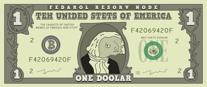 "The Doolar was created after an intern from the Quality Learing Center misspelled 'United States Dollar.'